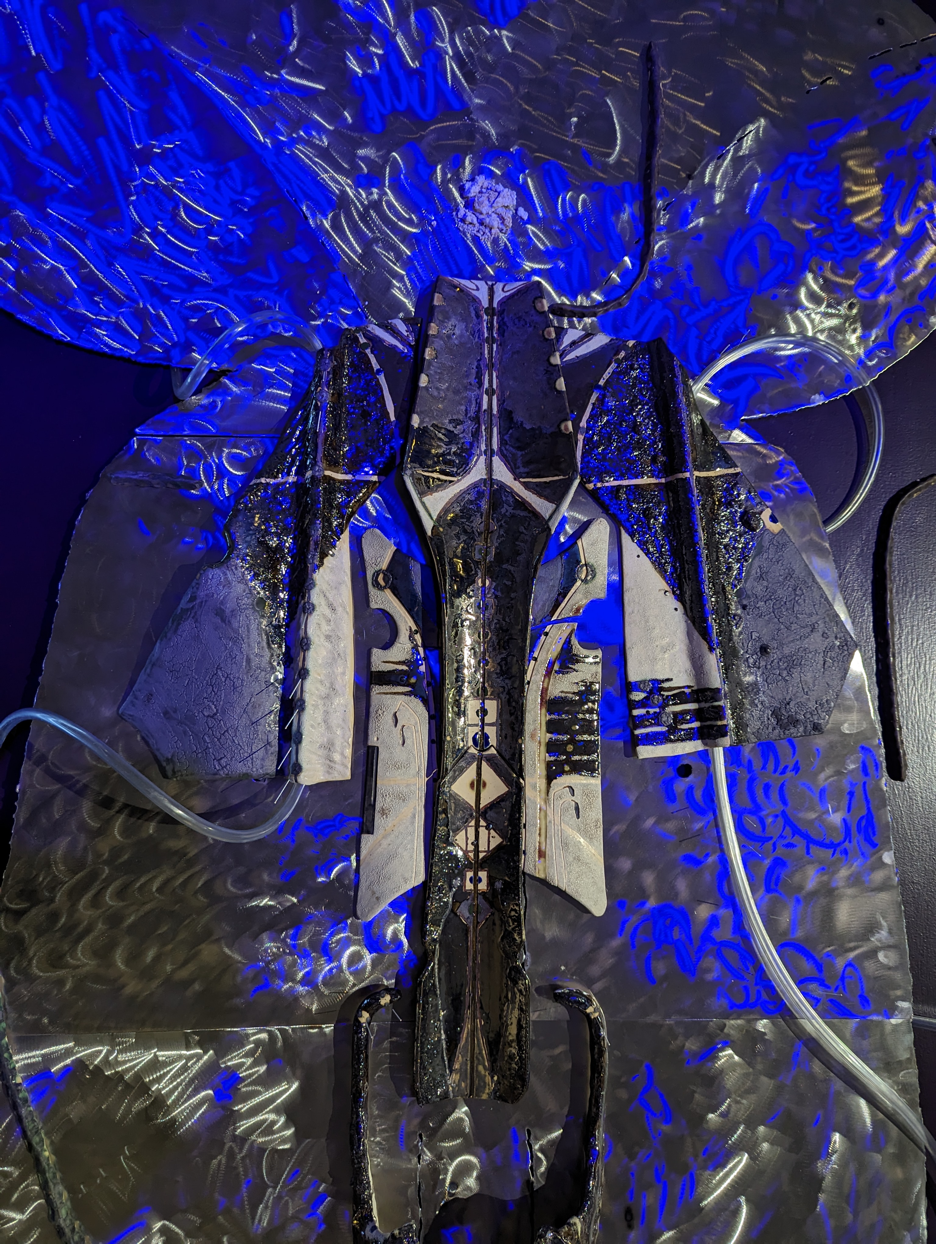 glazed ceramics, acupuncture needles, plastic tubes, crystallized salt on metal